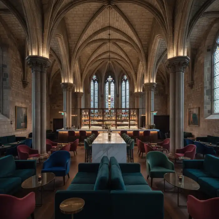 - Hedwig’s to luksusowy bar zaaranżowany w gotyckiej kaplicy, łączący historyczne wnętrza z nowoczesnym designem.